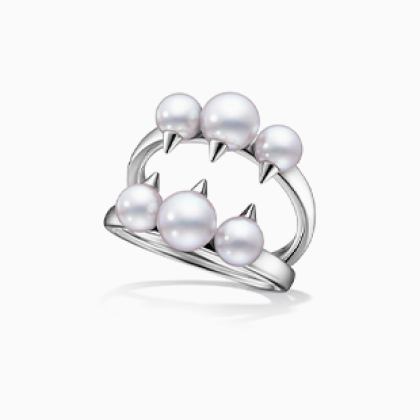TASAKI “refined rebellion”系列珠宝以细腻设计,演绎不拘常规的叛逆精神。这款戒指将TASAKI独有的优雅叛逆切割形黑色尖晶石,与莹润的阿古屋珍珠巧妙结合,彰显叛逆前卫的个性魅力。