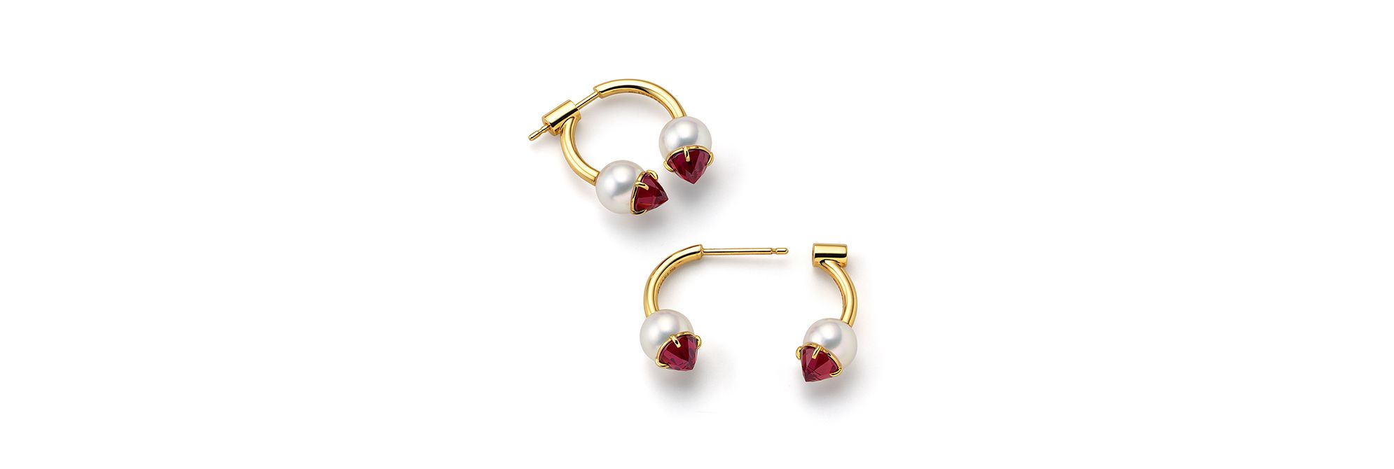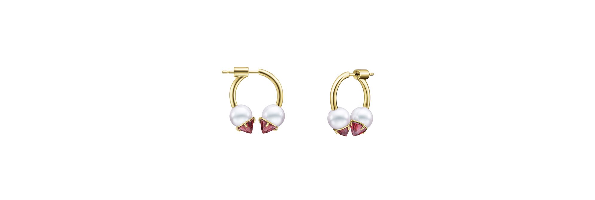 “refined rebellion”系列以精致设计彰显挑战陈规的反叛精神,将两种截然不同的气质无缝结合。色彩明艳的石榴石以TASAKI独有的“精致叛逆”切割,镶嵌于优雅的阿古屋珍珠上,成为这款耳环的主要元素,而黄金的迷人光泽,令这一时尚设计更添魅力。