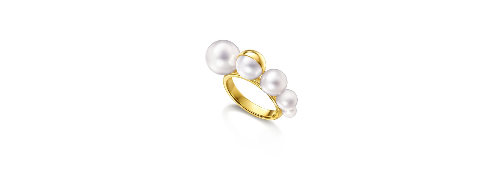 TASAKI “SHELL”系列将大小不一的珍珠按尺寸渐变排列,勾勒贝壳的天然形态。盈润饱满的珍珠呈现奢华质感,精美点缀指间。18K黄金涂层为这款戒指的隽永设计增添迷人色彩。
