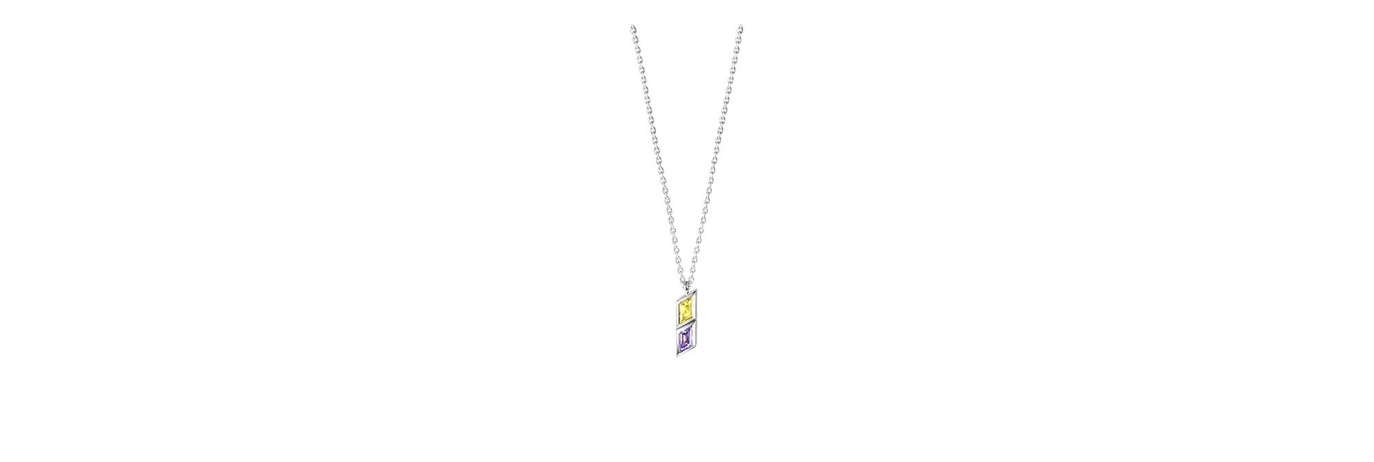 TASAKI “SLASHED”系列灵感源自M/G TASAKI的标志性斜线设计,以大胆且颠覆传统的手法,将各种对比与冲突的元素相糅合。特别研发的花式切割设计跨越性别界限,将黄色及紫色蓝宝石打造成斜线造型。这款白金吊坠采用前卫的几何形状,设计时尚有型。
