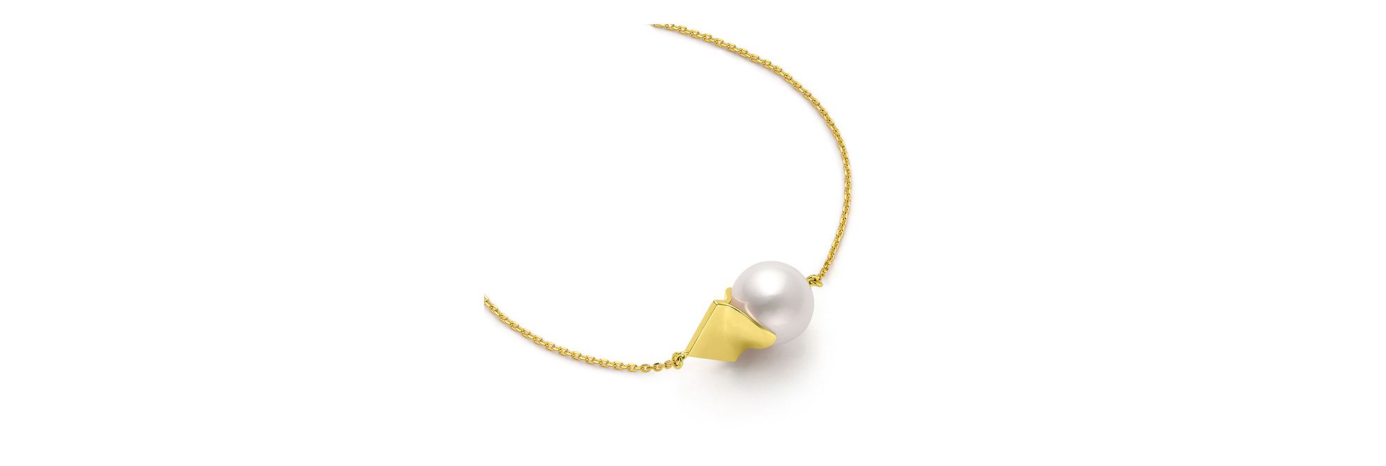 “SQUARE LEAF”系列巧妙结合抛光18K黄金的硬朗质感与珍珠的纯美。淡水珍珠与18K黄金材质相得益彰,为这款手链增添精美光泽,在腕间展现时尚质感。
