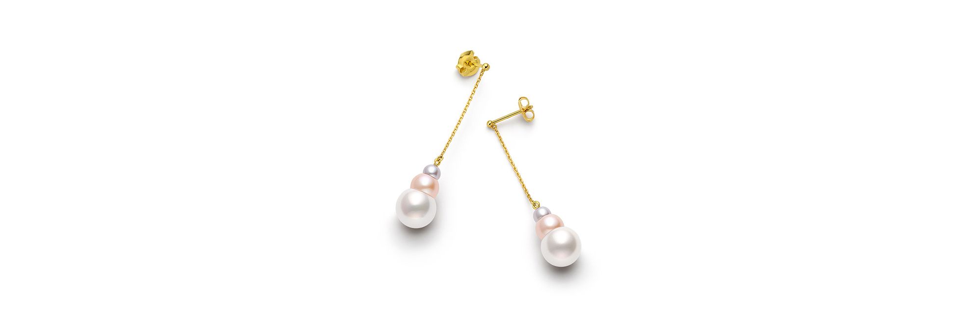 充满创意的“TRIPLE PEARL”系列为淡水珍珠注入崭新元素。精美的珍珠以充满韵律的方式排列,并以白色、薰衣草紫色和蓝色三款柔和甜美的配色呈现。纤长的18K黄金链式耳环摇曳生姿,让您成为瞩目焦点。