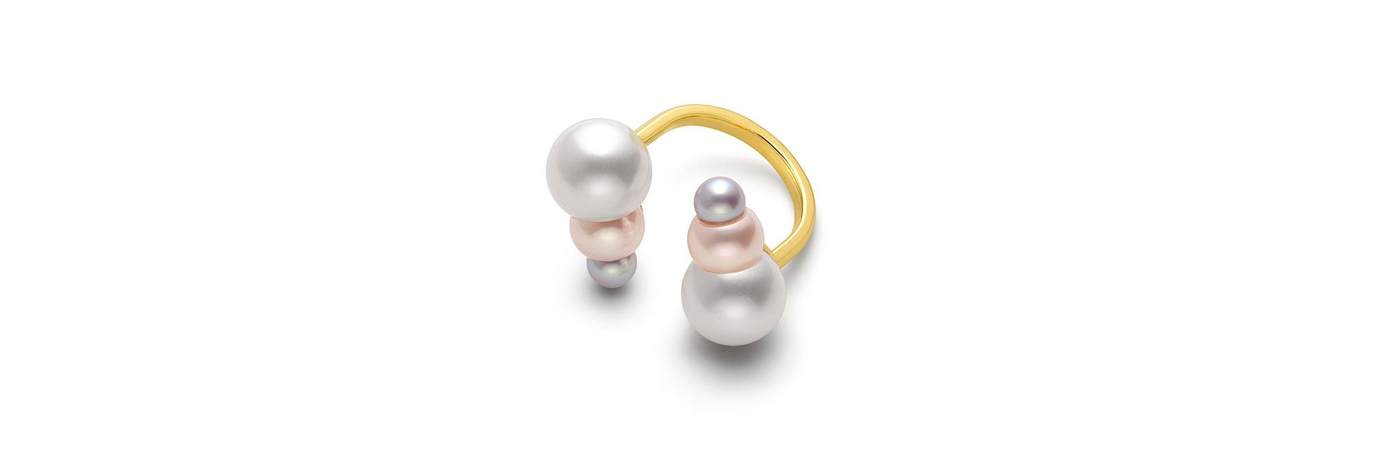 “TRIPLE PEARL”系列以充满韵律的排列方式巧妙演绎淡水珍珠,以白色、薰衣草紫色和蓝色三款柔和甜美的配色呈现。这款摩登时尚、充满创意的戒指展现了M/G TASAKI系列的设计特色,单颗珍珠的点缀,令一整排珍珠焕发生动活力。趣味设计令珍珠宛若悬浮于指间,尽显灵动创意。