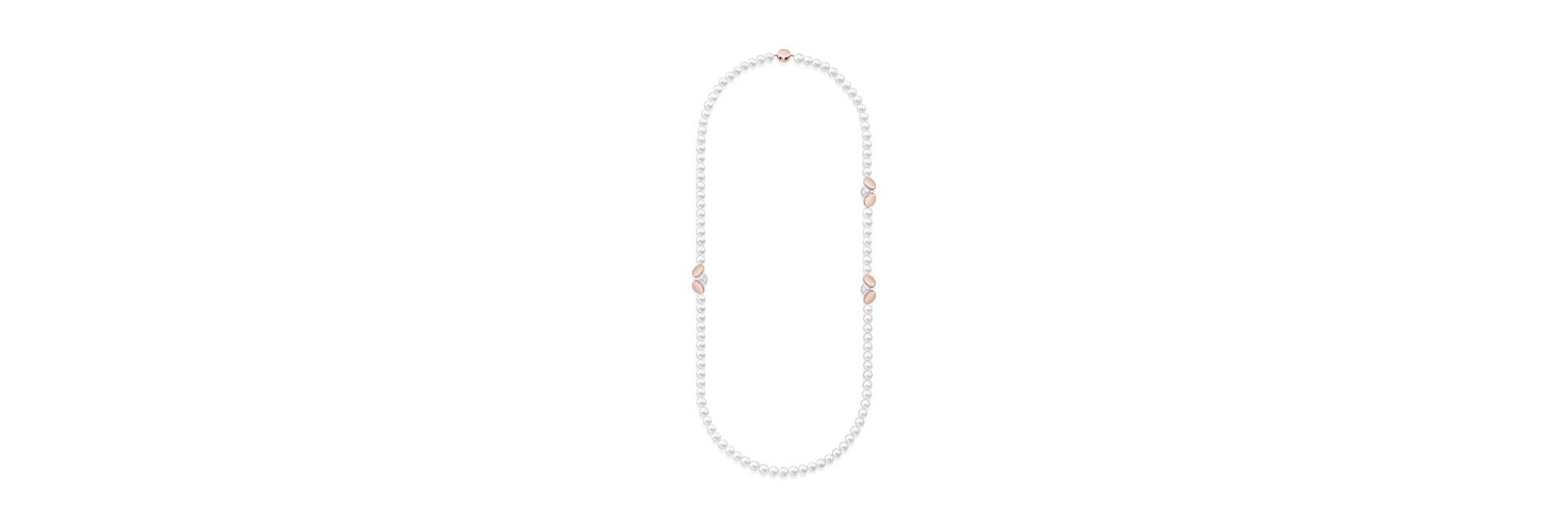 这款 80 厘米长的项链饰有莹润珍珠与镶嵌钻石的樱花金圆盘,光彩流转,璀璨动人。摩登自信的设计,可单圈佩戴亦可缠绕成双圈,是适配多种场合的点睛之作。