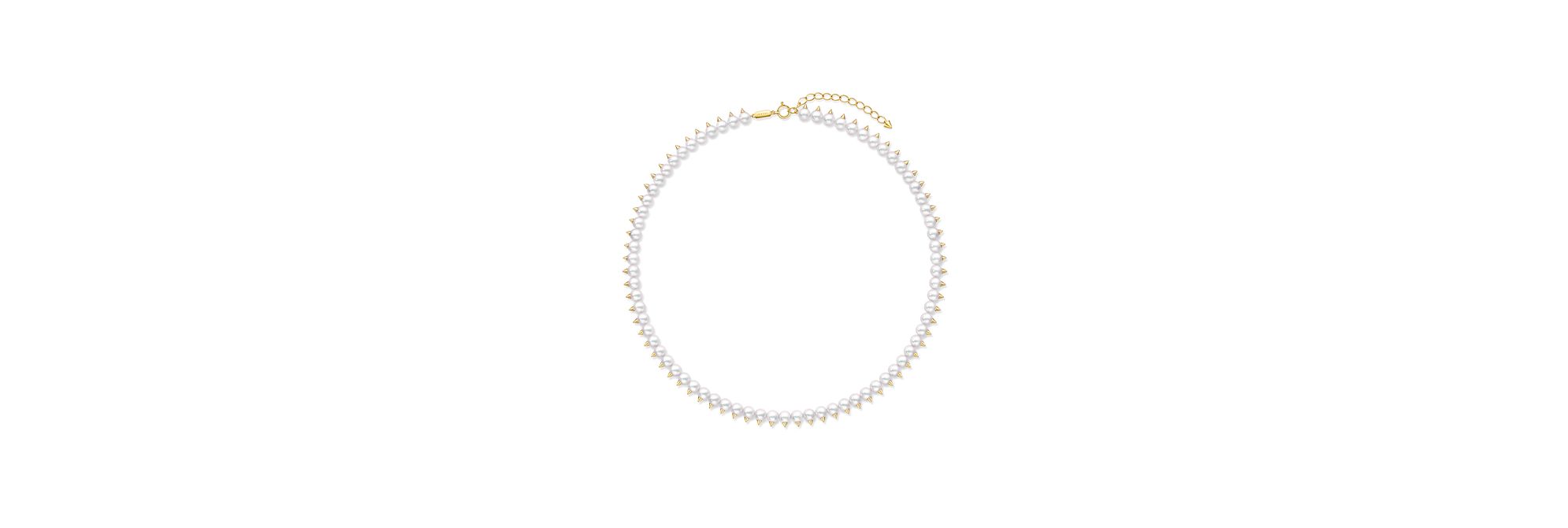 “danger”系列以经典18K黄金利齿优雅点缀每一颗珍珠。这款项链采用中性设计,别具一格的利齿造型为优雅的阿古屋珍珠增添动人光芒,演绎摩登风尚。为日常造型增添前卫气息。