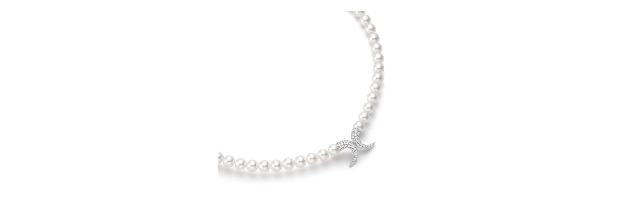 “danger horn”项链以摩登设计迷人呈现危险锋利的尖角意象。一对立体的18K白金尖角采用密镶钻石璀璨妆点,于经典阿古屋珍珠项链上释放闪耀光芒。这款珠宝让任何性别的佩戴者尽显魅力格调。