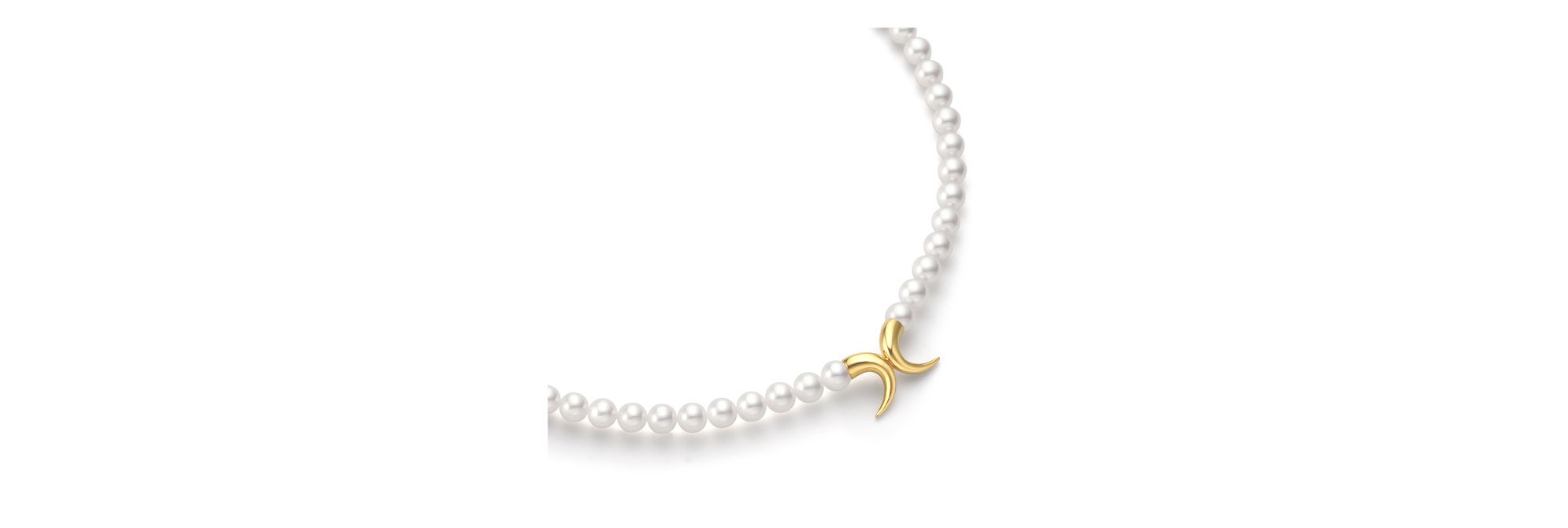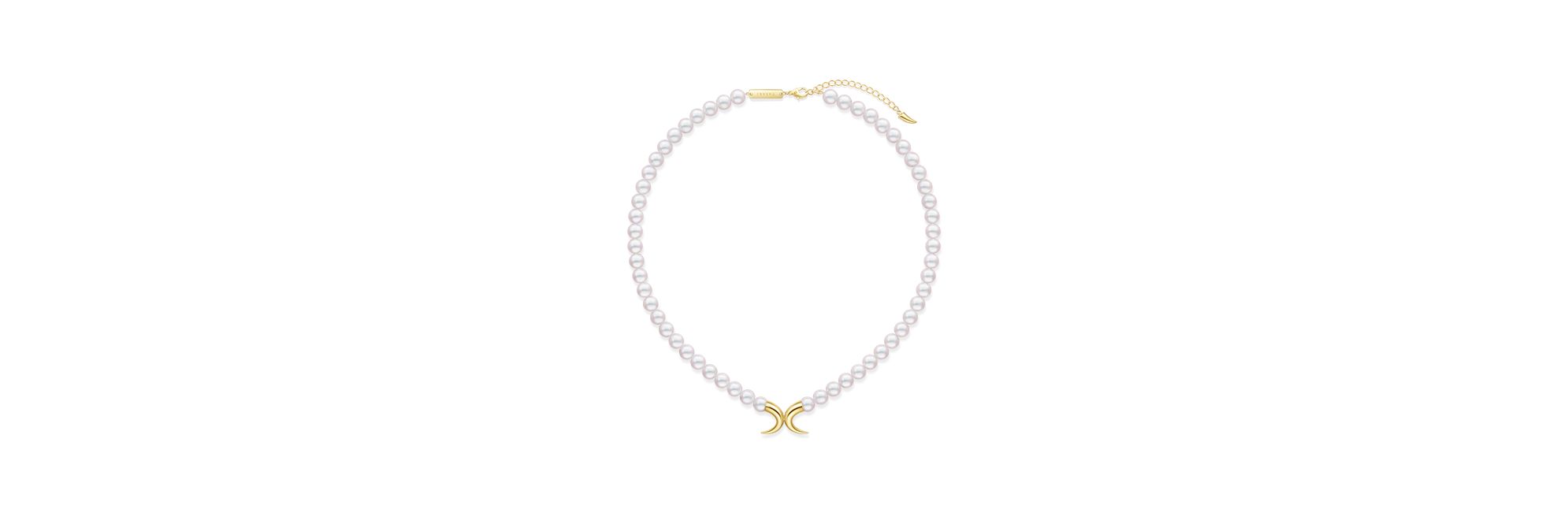 “danger horn”项链以摩登设计迷人呈现危险锋利的尖角意象。一对线条圆润但张力十足的18K黄金尖角点缀于经典的阿古屋珍珠项链。对称雅致的设计让人过目难忘。这款珠宝让任何性别的佩戴者尽显魅力格调。