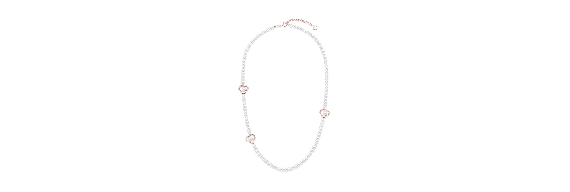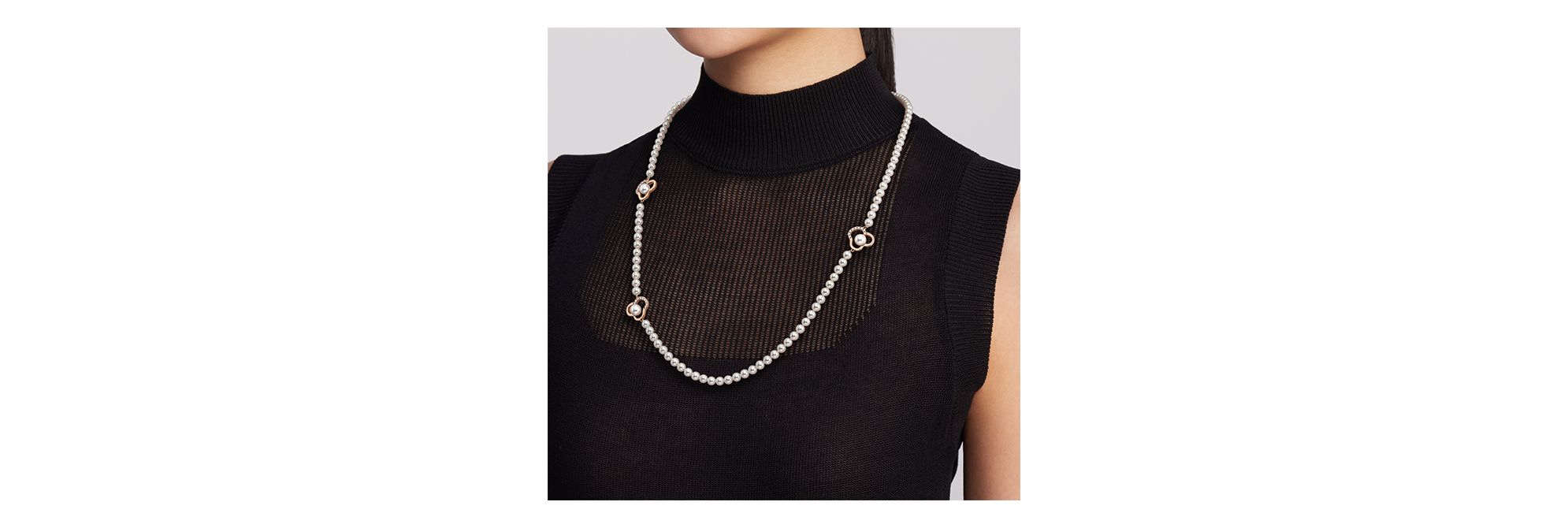 “chants signature”项链雅致百搭,于时尚优雅间巧妙融入花卉意趣。珍珠点缀于饰有密镶钻石元素的樱花金花朵轮廓之间,散发出莹润柔和的华彩。灵动的设计轻松适应多种佩戴方式,从容搭配不同造型与场合。