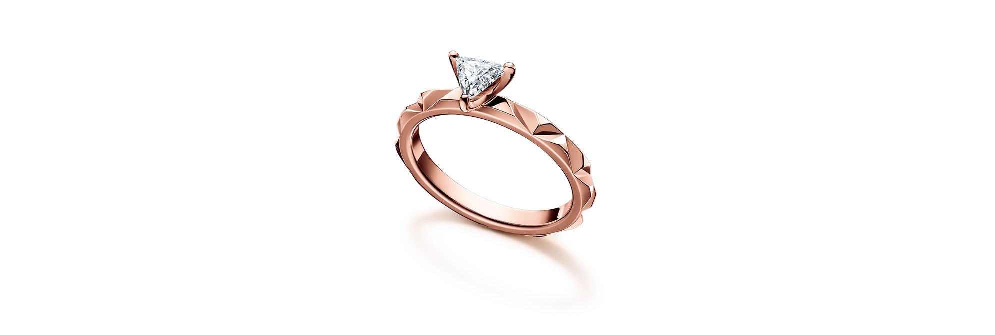 TASAKI “VALLE”系列造型前卫,其三角形刻面宛如峡谷,灵感源自铭刻在爱人们心中的幸福回忆。三角形切割中央主钻现代时尚,其比例经过悉心设计,极尽璀璨光芒。TASAKI标志性樱花金呈现日本樱花的粉嫩色泽,精美衬托任何肤色。备注:本品不提供尺寸修改服务。