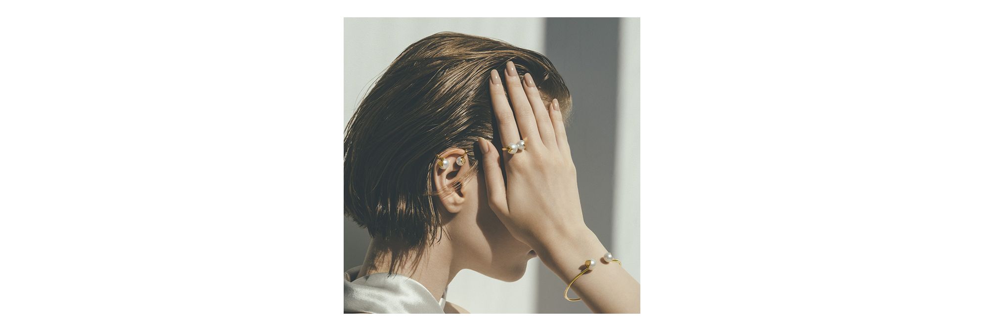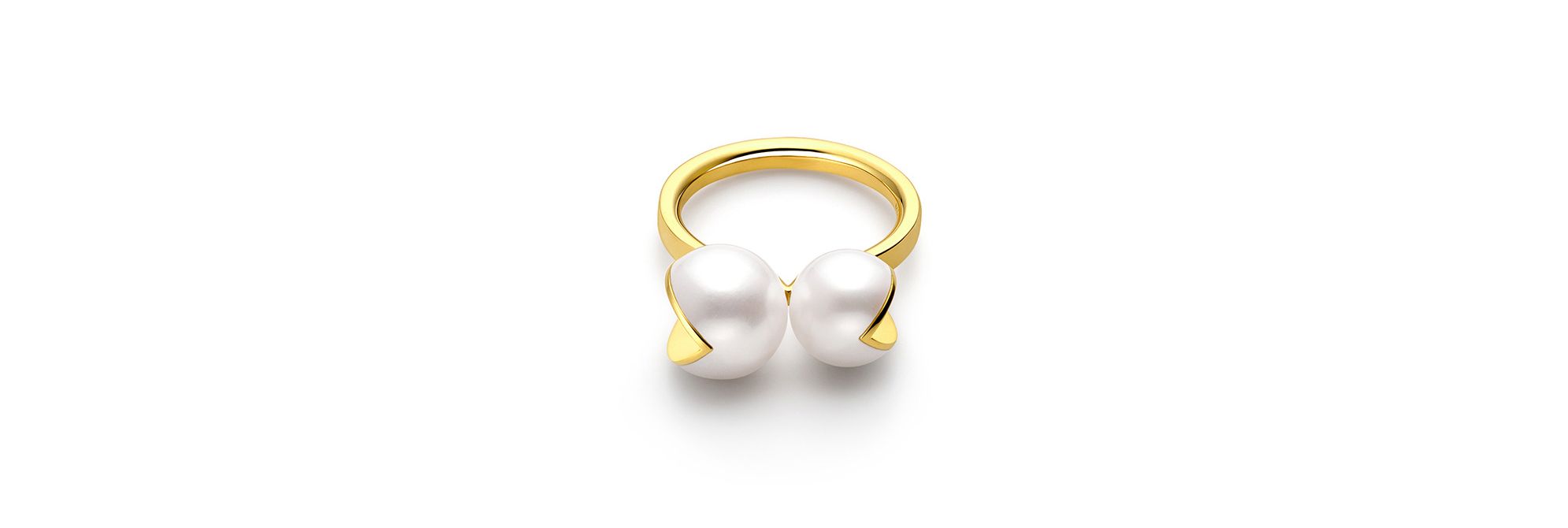 “WEDGE”系列通过珍珠截面的18K黄金折射光线,绽放多彩光芒。这款戒指饰有两颗大小不一的淡水珍珠,截面朝外,巧妙捕捉光影,闪耀动人魅力。