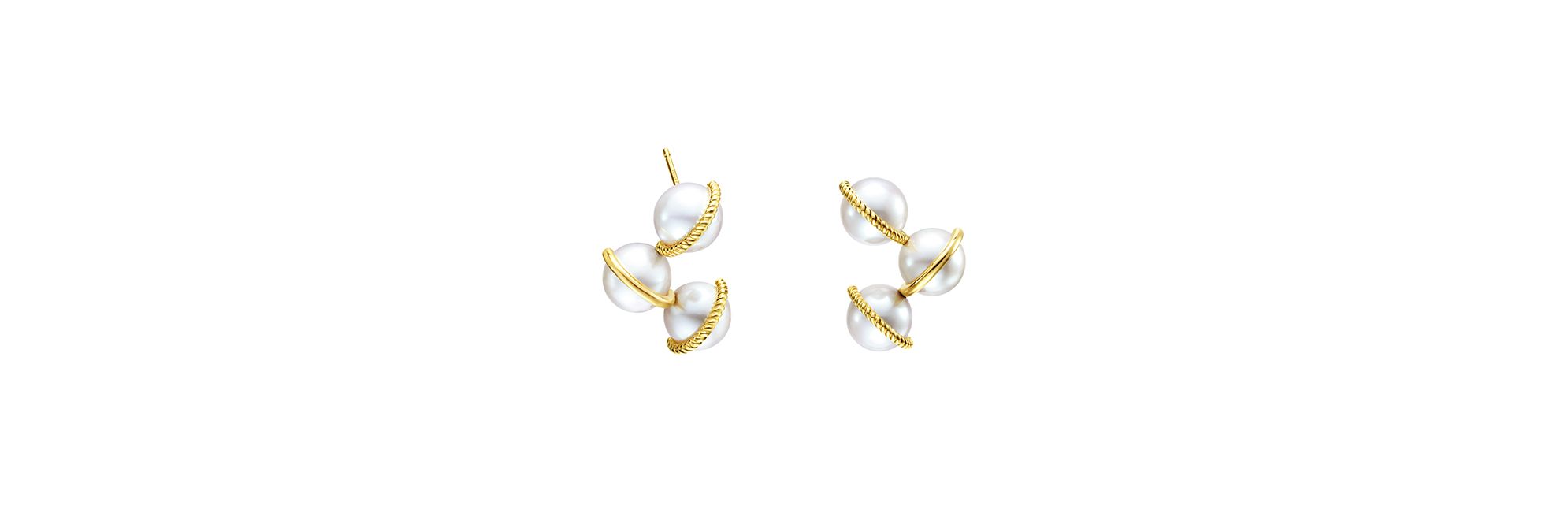 这款耳环以细腻的18K黄金丝线,轻柔交织于一组珍珠,尽显时尚与复古。